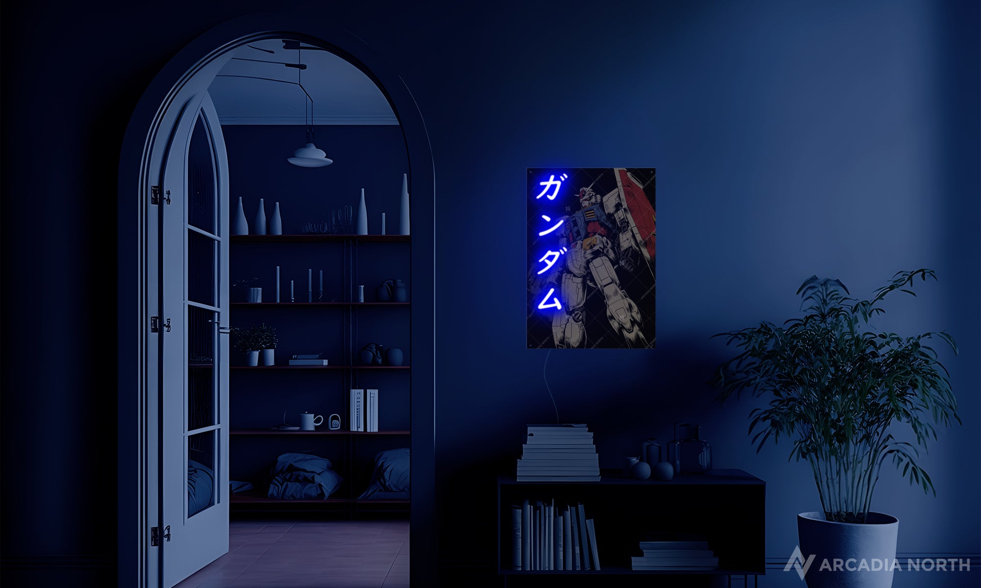 The Arcadia North AURALIGHT™ is a premium acrylic print with built-in LED neon lighting that highlights key parts of your favorite designs. Add 3D depth that flat prints can't match - neon accents that make symbols pulse and eyes pierce through shadows.